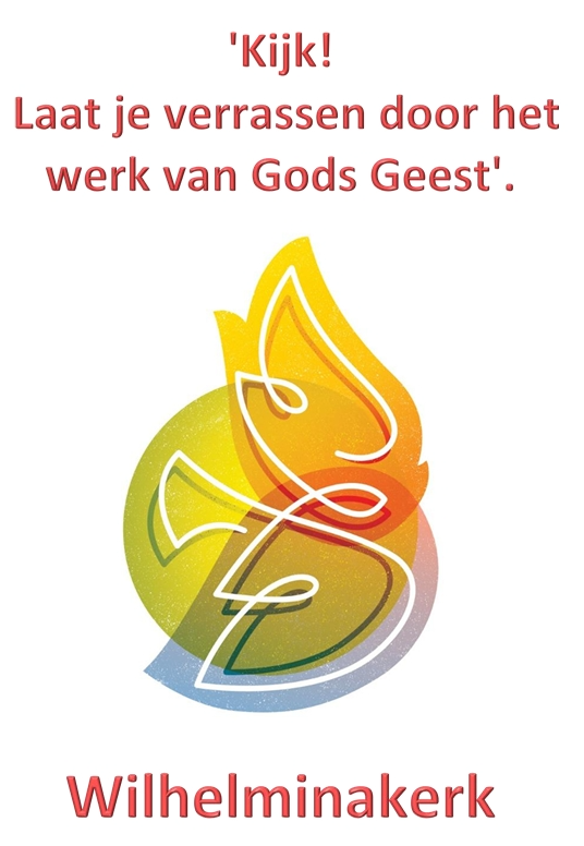 “Kijk! Laat je verrassen door het werk van Gods Geest” is het jaarthema van dit seizoen. “Kijk!” naar de afbeelding bij dit thema en je ziet steeds meer: een duif, vuur, water en vooral veel kleuren. Er zit dat verrassende in, een soort speelsheid die niet in een al te nauwgevormd kader gevangen kan worden. Als ik me realiseer dat Gods Geest op zo’n manier aan het werk is, ga ik direct al anders kijken. Met een ontvankelijke, speurende blik. Want ieder moment, iedere persoon, iedere plek in deze wereld kan een broedplaats van de Geest zijn. En het zou uit onverwachte hoek kunnen komen. Het heeft iets ontspannends: iets minder menen dat ik de werkelijkheid moet vormen of controleren, iets meer vertrouwen dat de Geest er al ìs. Lied 978:4 beschrijft het zo: “…laat mij door de wereld gaan met open ogen, open oren om al uw tekens te verstaan.” En hoe die Geest nu precies samengaat met een boekje vol geplande activiteiten? Ach, een beetje organisatie is niet verkeerd. Volgens mij zijn al die ontmoetingen op zich een kans om werkelijk open te staan, te kijken en ons te laten verrassen. Want “als de wind die waait met vlagen, zo verrassend is de Geest, soms een storm met donderslagen, soms een stem: Wees niet bevreesd! Soms een vlam, een vonk van boven, soms een haard die laait van vuur, soms een lamp die uit kan doven, soms een glans van korte duur.” (Lied 700) ds. Evelien Plaisier