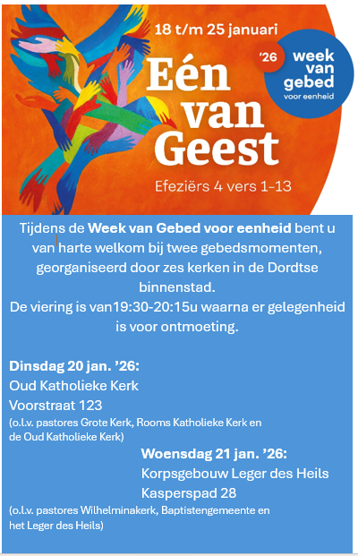 Dinsdag 20 januari ’26 om 19:30u in de Oud Katholieke Kerk, Voorstraat 123 en